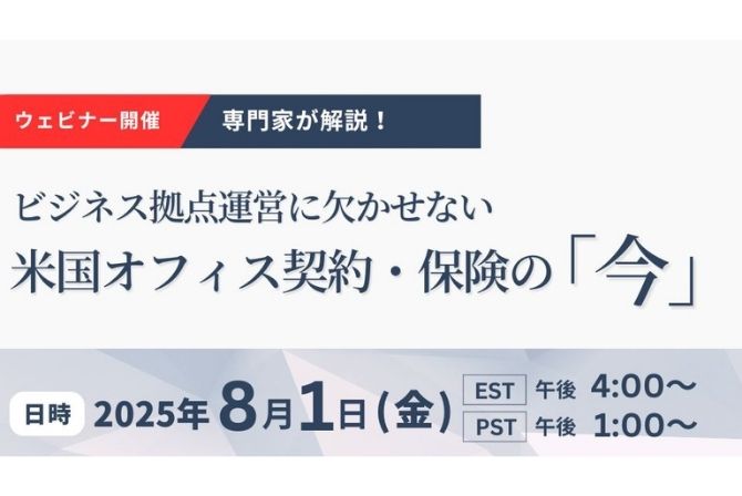 専門家が解説!ビジネス拠点運営に欠かせない米国オフィス契約・保険の「今」│8/1(金)ウェビナー開催